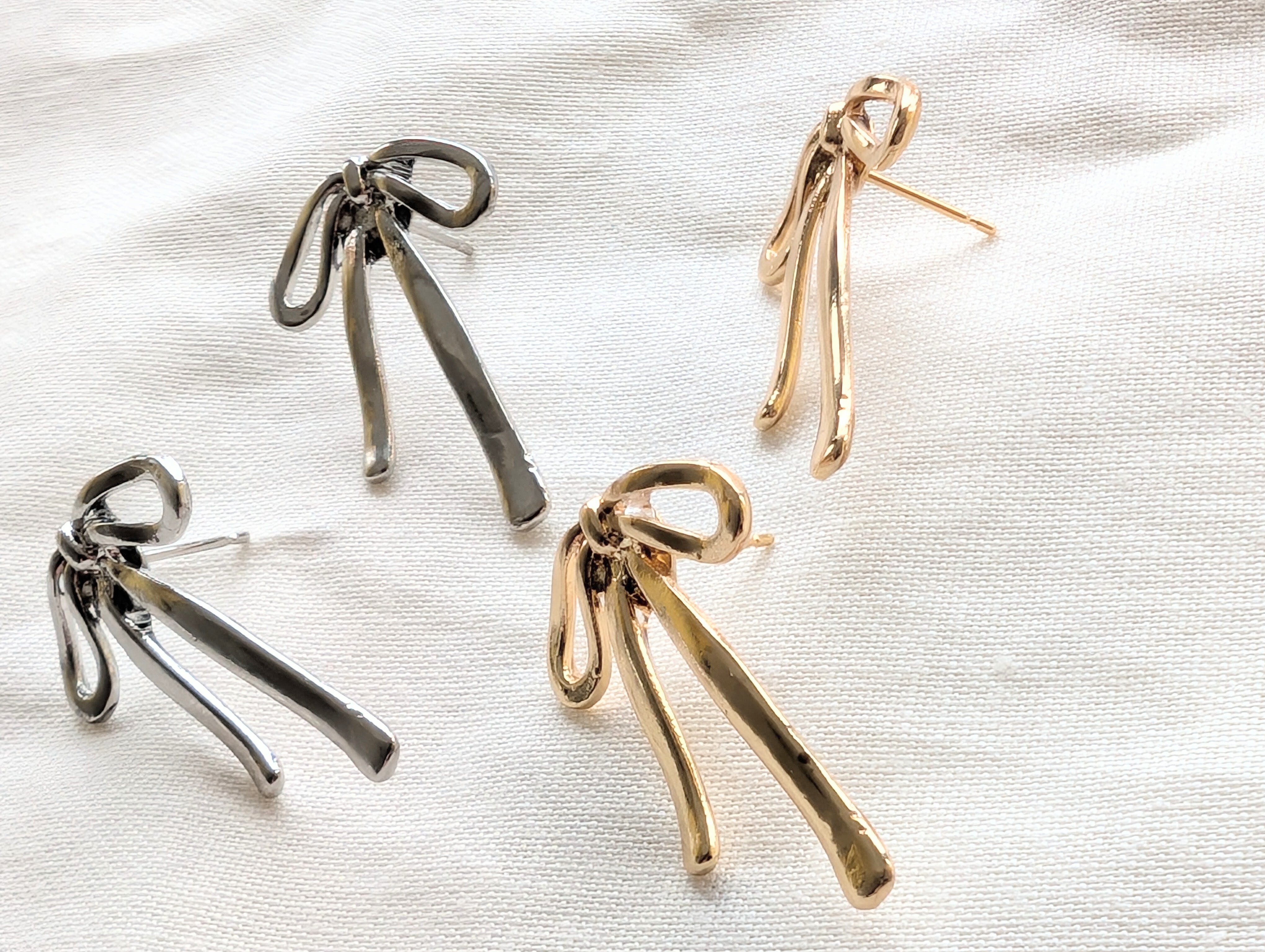 リボンのヴィンテージパーツをピアス・イヤリングにしました。