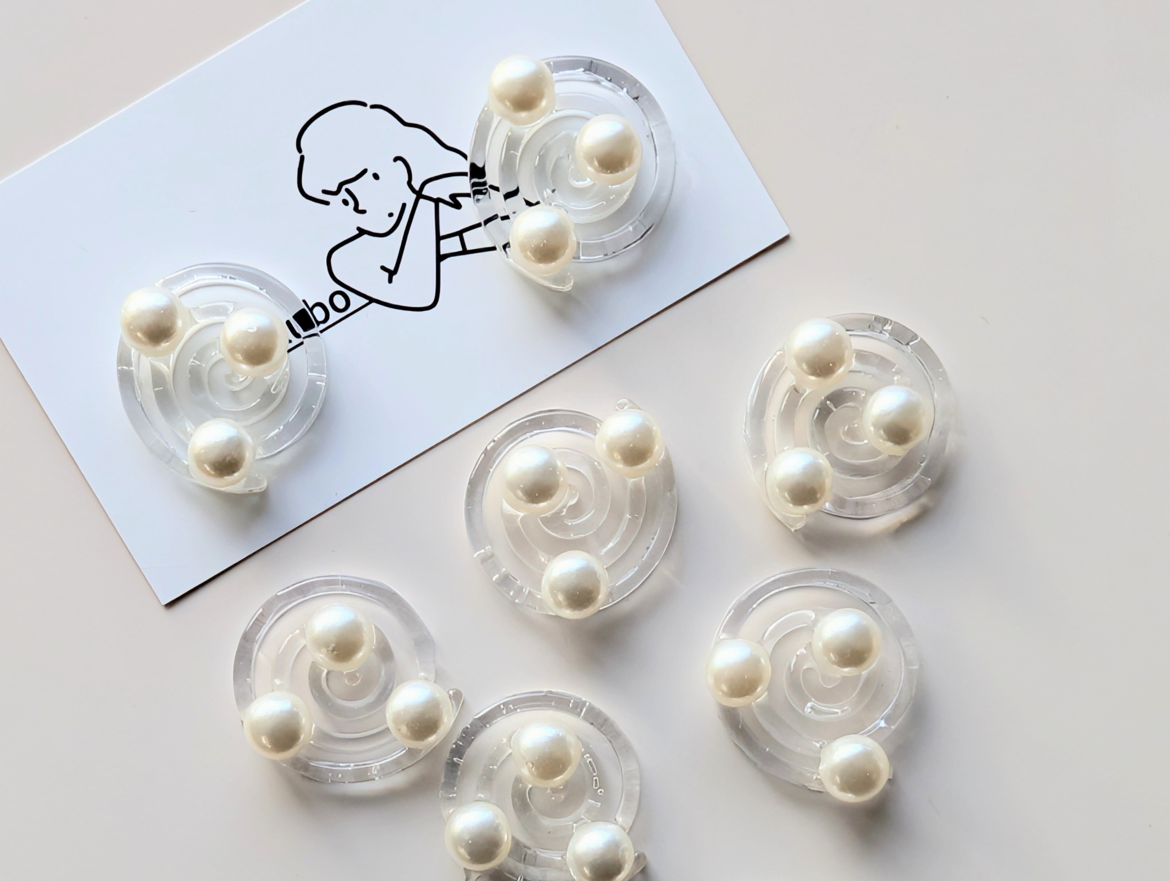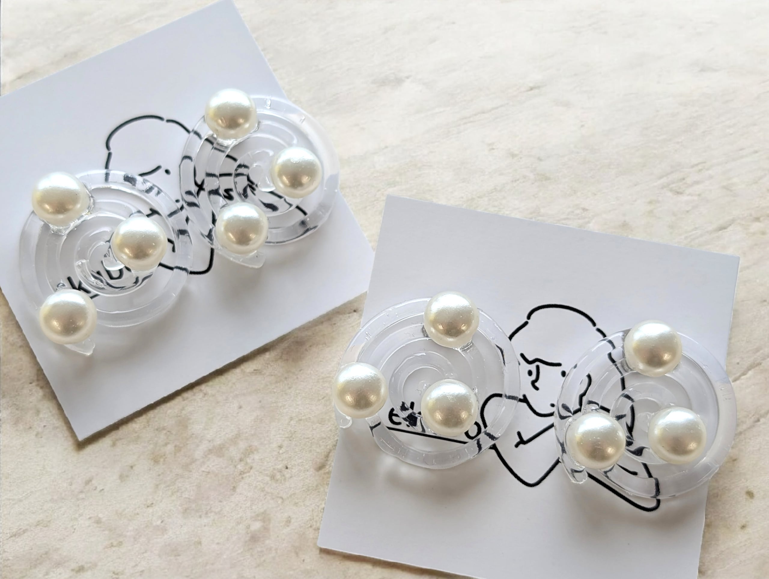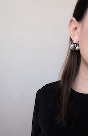 縦横 約2.5cm 渦巻き型のピアス・イヤリング パールがアクセントになっています。