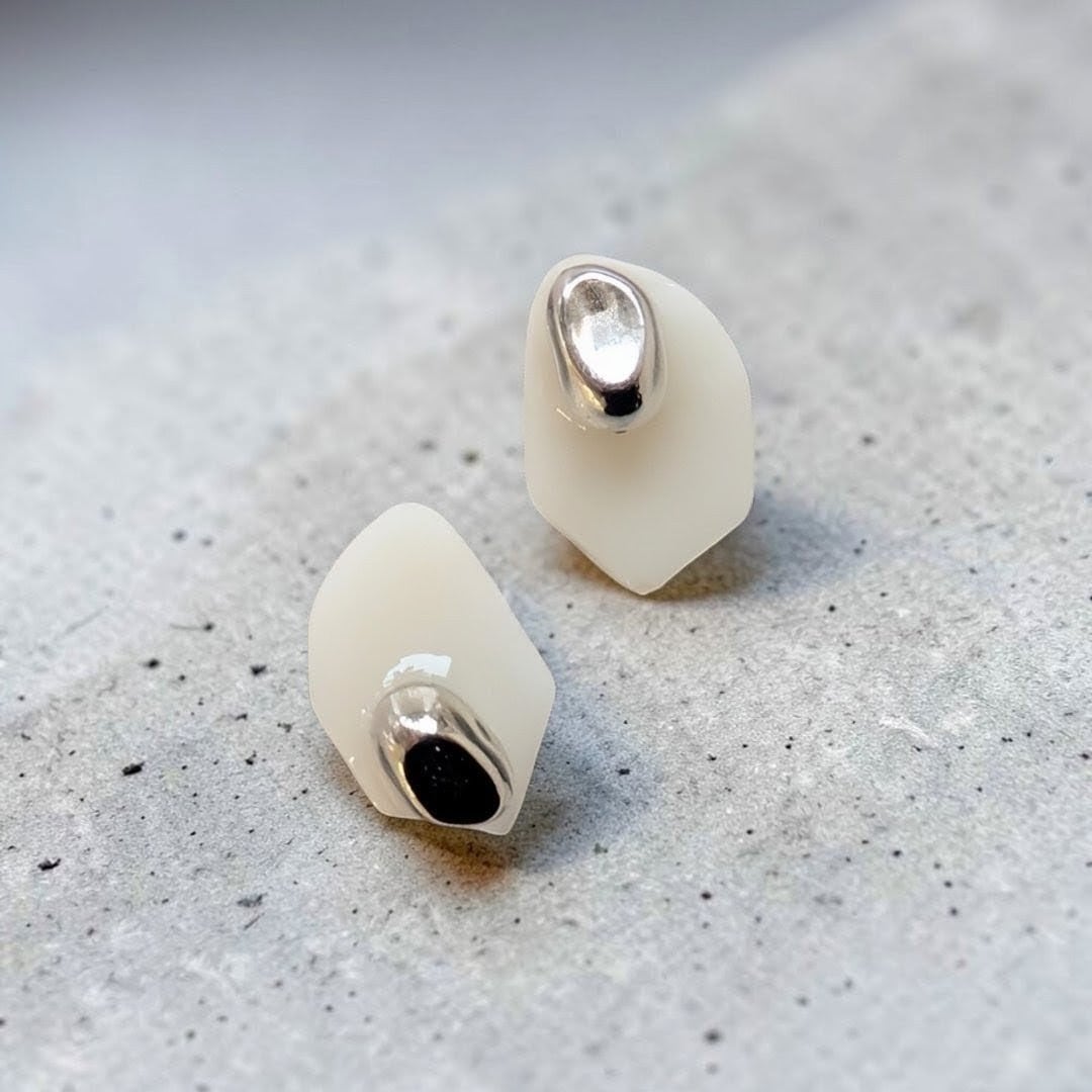 シルバーのビーズのワンポイントがアクセントのピアス・イヤリング