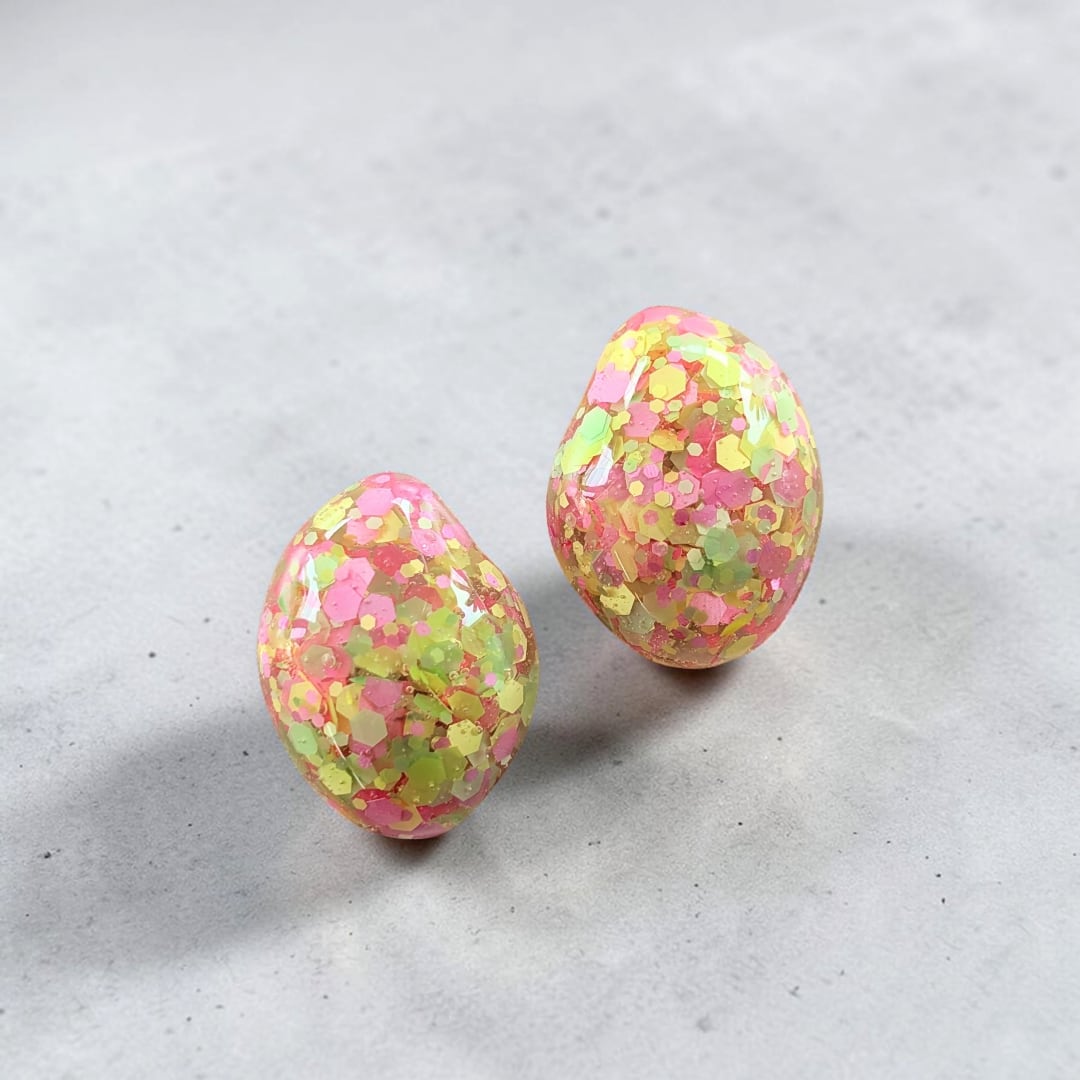 いろんな色のフレークが混ざり合ったピアス・イヤリング