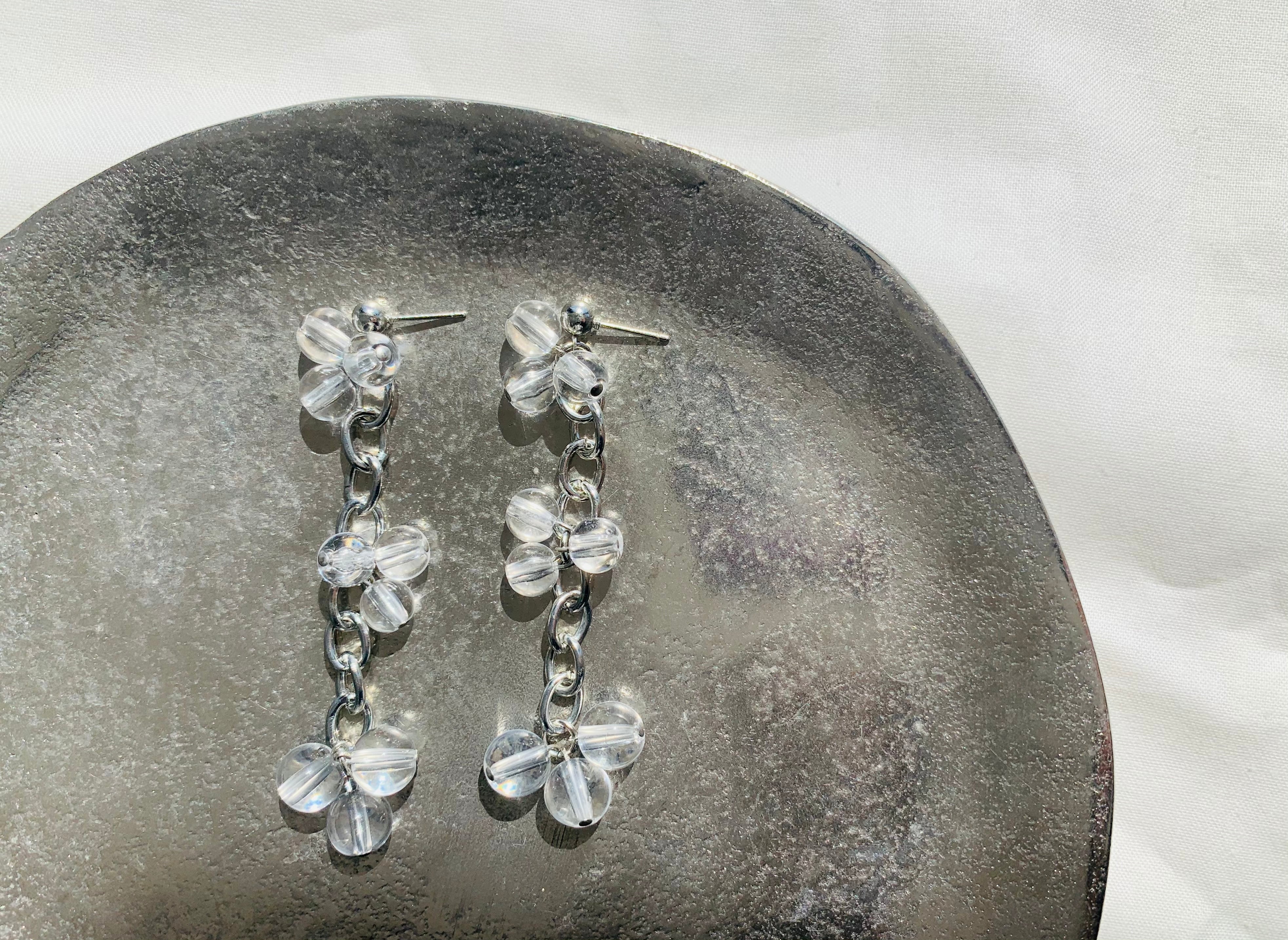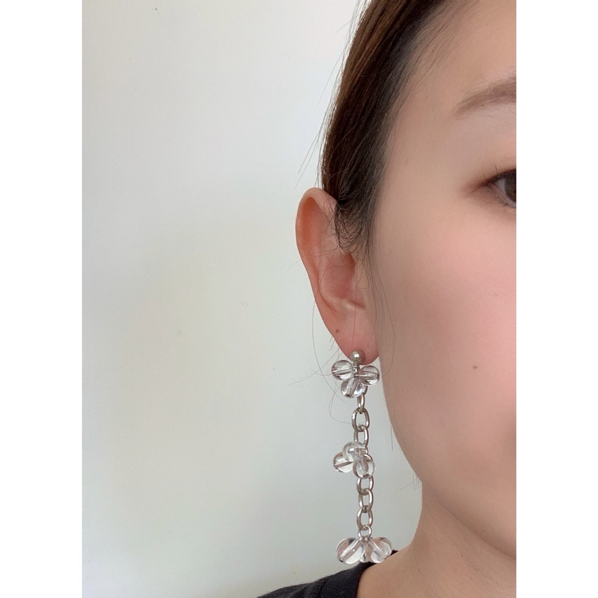 クリアビーズとシルバーチェーンのピアス・イヤリングです。