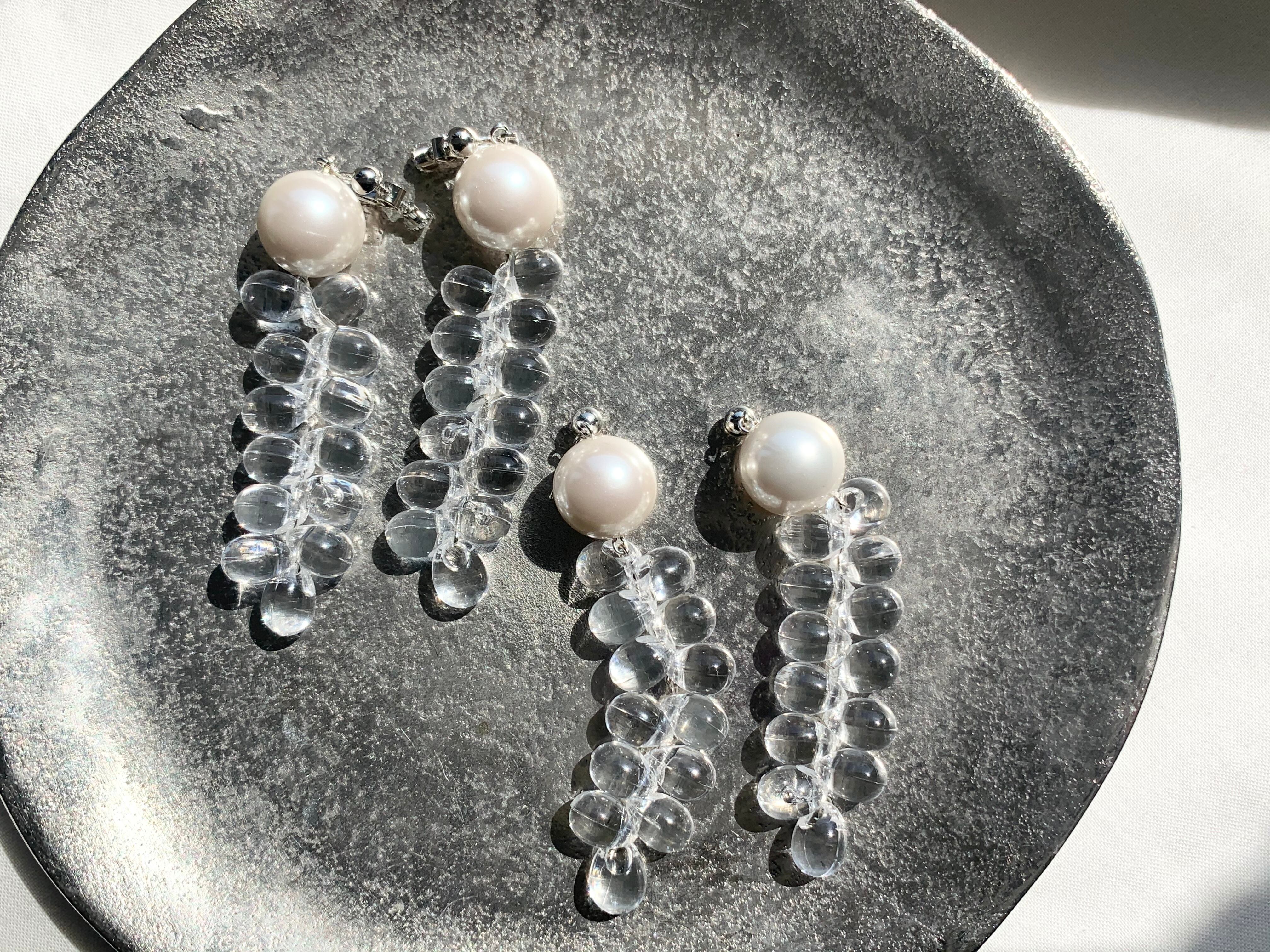 大きめのパールにチェコビーズを繋げたピアス、イヤリングになります。