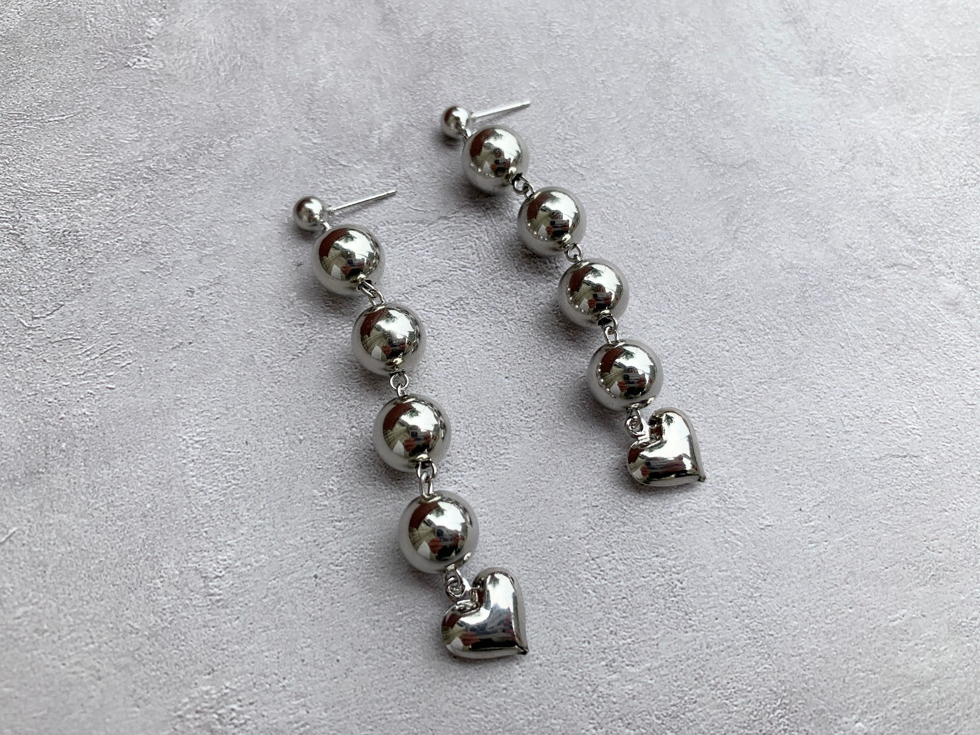 シルバーの丸ビーズとシルバーのハートを使ったピアス・イヤリングです。