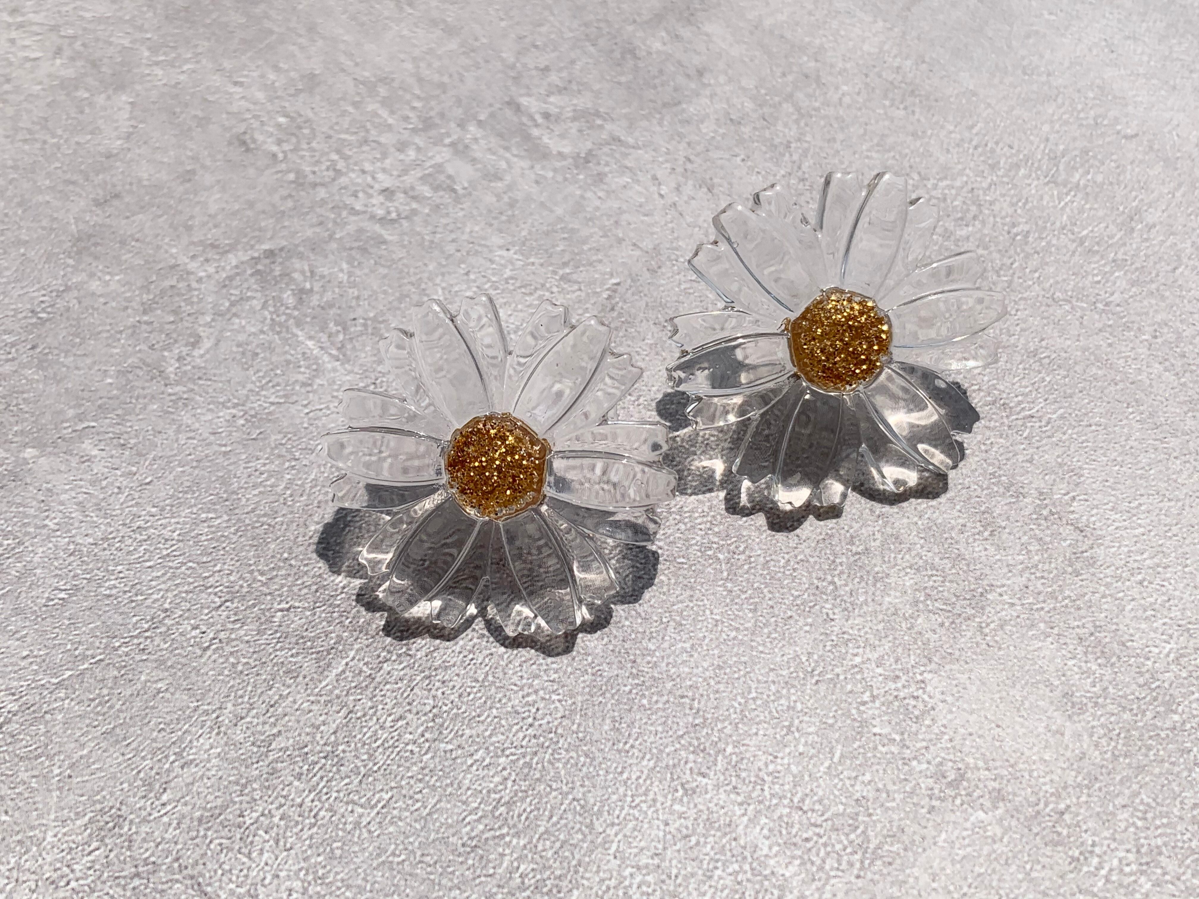 クリアのお花にゴールドのラメをのせたピアス・イヤリングです。