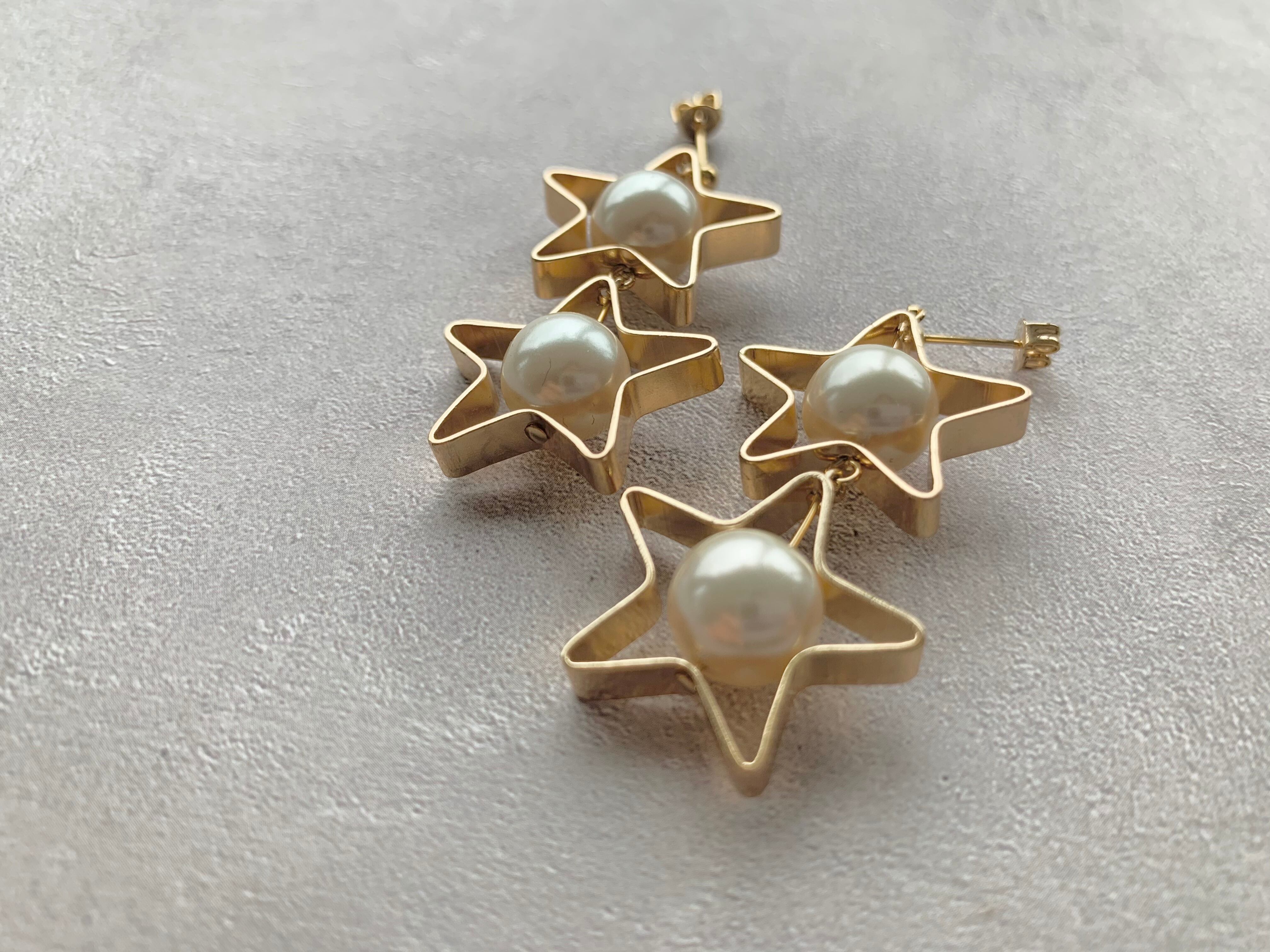 ゴールドの星のフレームの中にパールを埋めた華やかなピアス・イヤリングです。