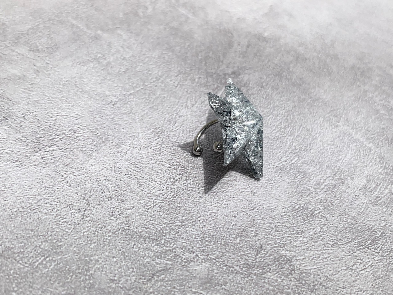 レジンの中に銀箔を埋めこんだ星のイヤーカフ。