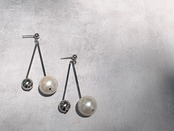 振り子のようにゆらゆら揺れるパールとシルバーのピアス・イヤリング。