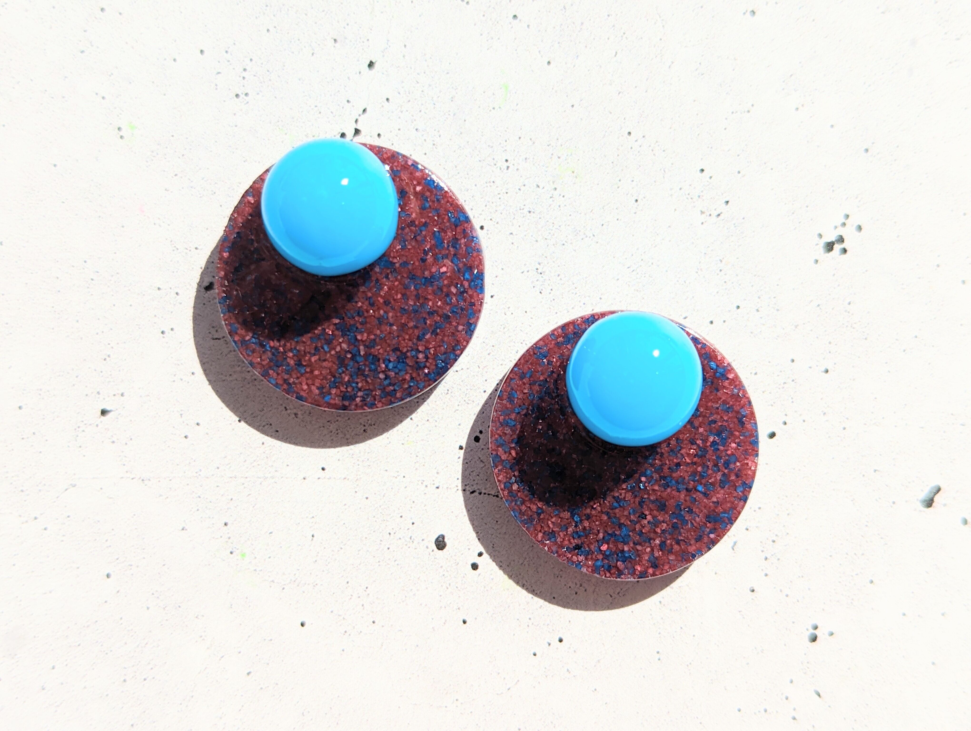 いろんな色のカラーサンドを混ぜ合わせたピアス・イヤリング。