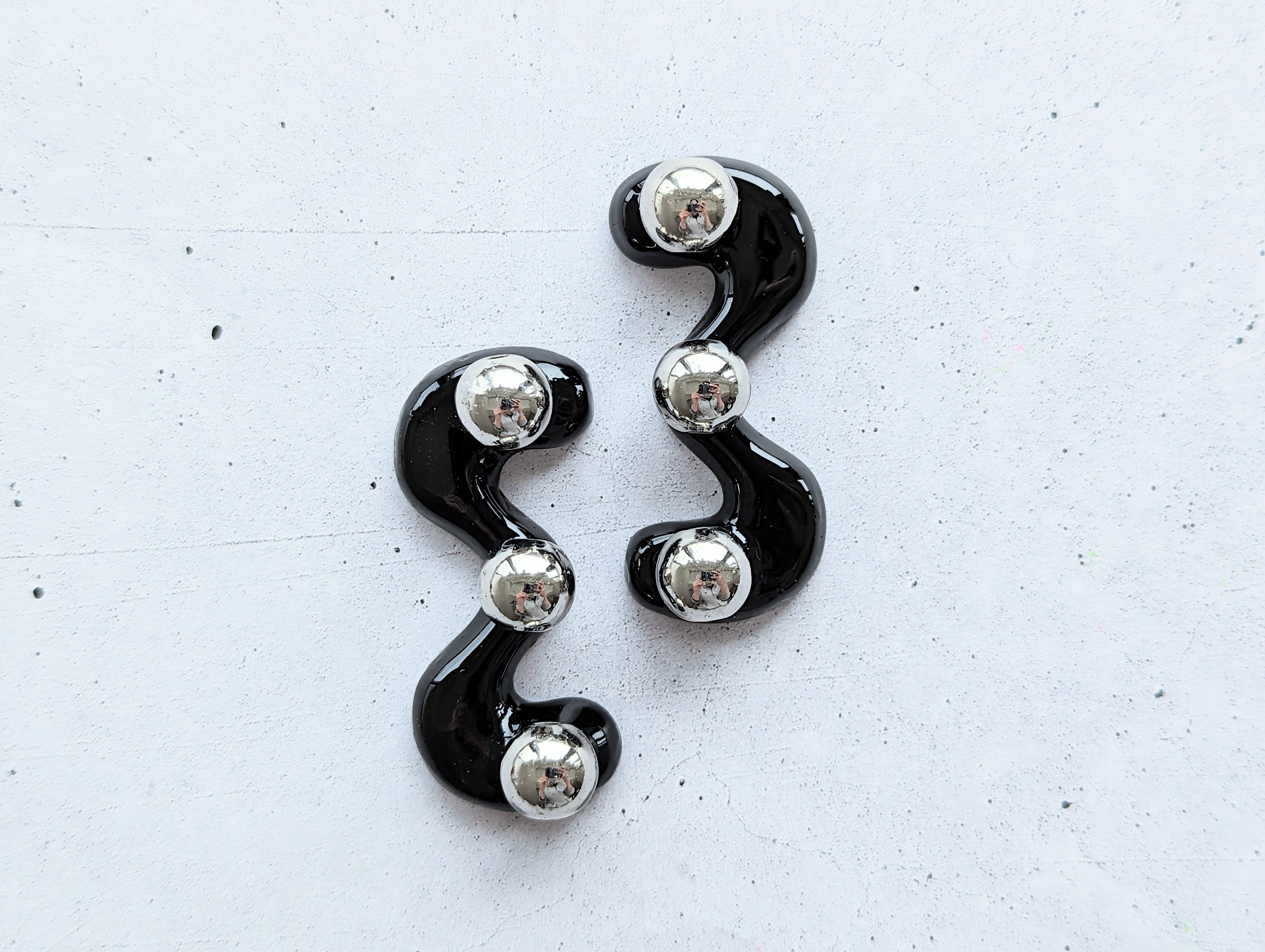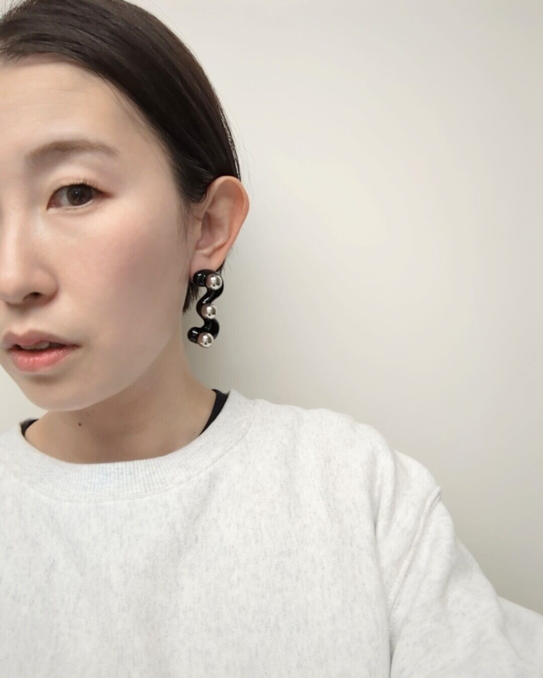 ブラックのくねくねにシルバービーズをのせたシンプルなピアス・イヤリング。