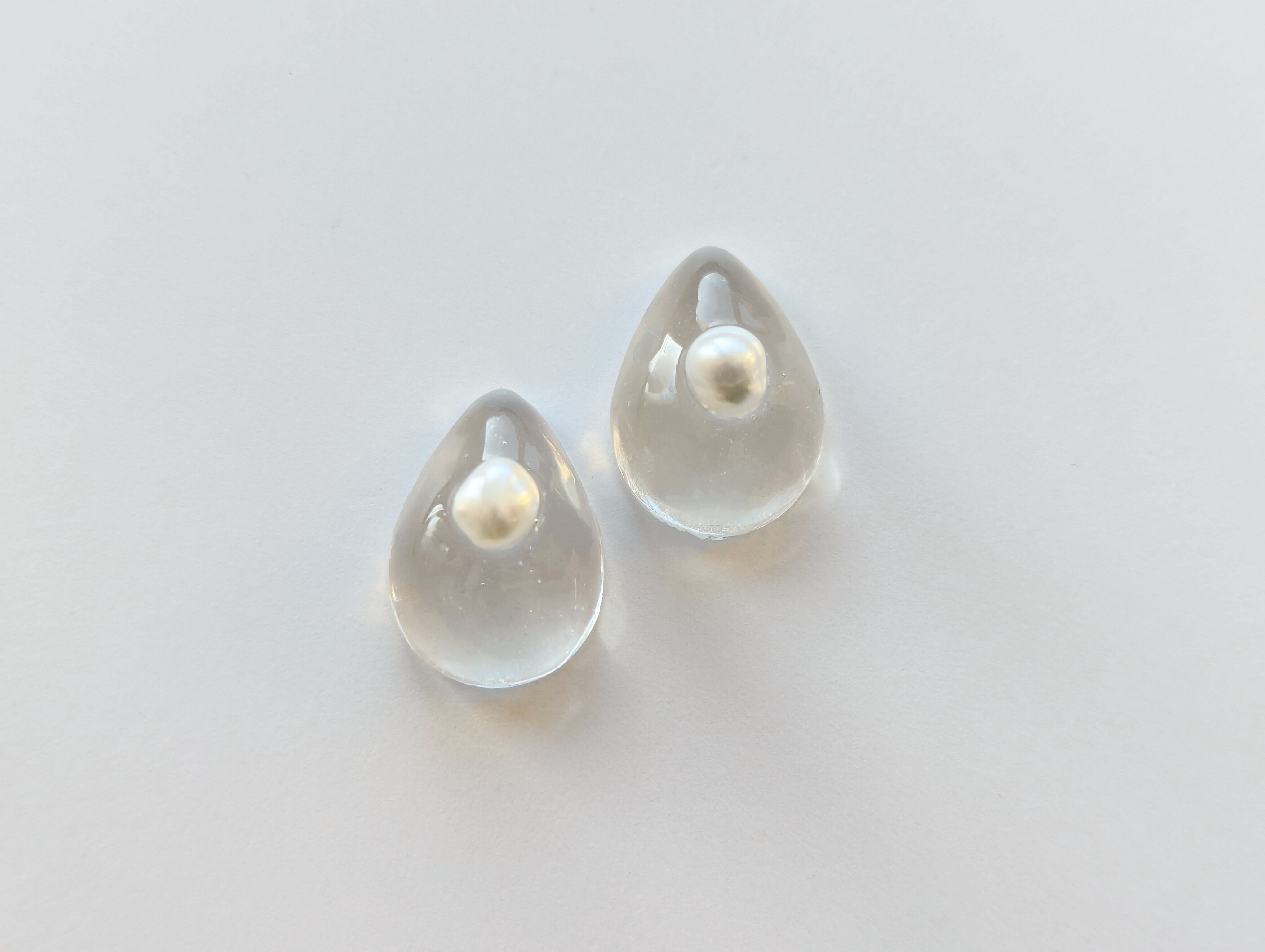小さめの雫型に淡水パールをのせたシンプルな商品です。
