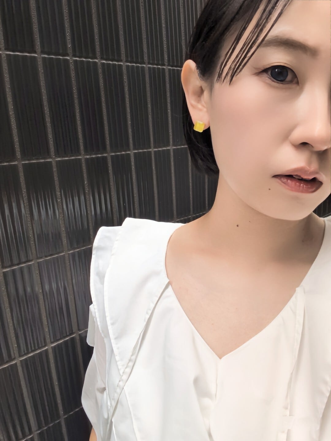 (イヤリングの方の四角はひし形の形になるようにイヤリングの金具をつけています。※イヤリングの金具をひし形の位置ではなく四角をご希望の方は購入の際の備考欄に四角希望とご入力くださいませ。)