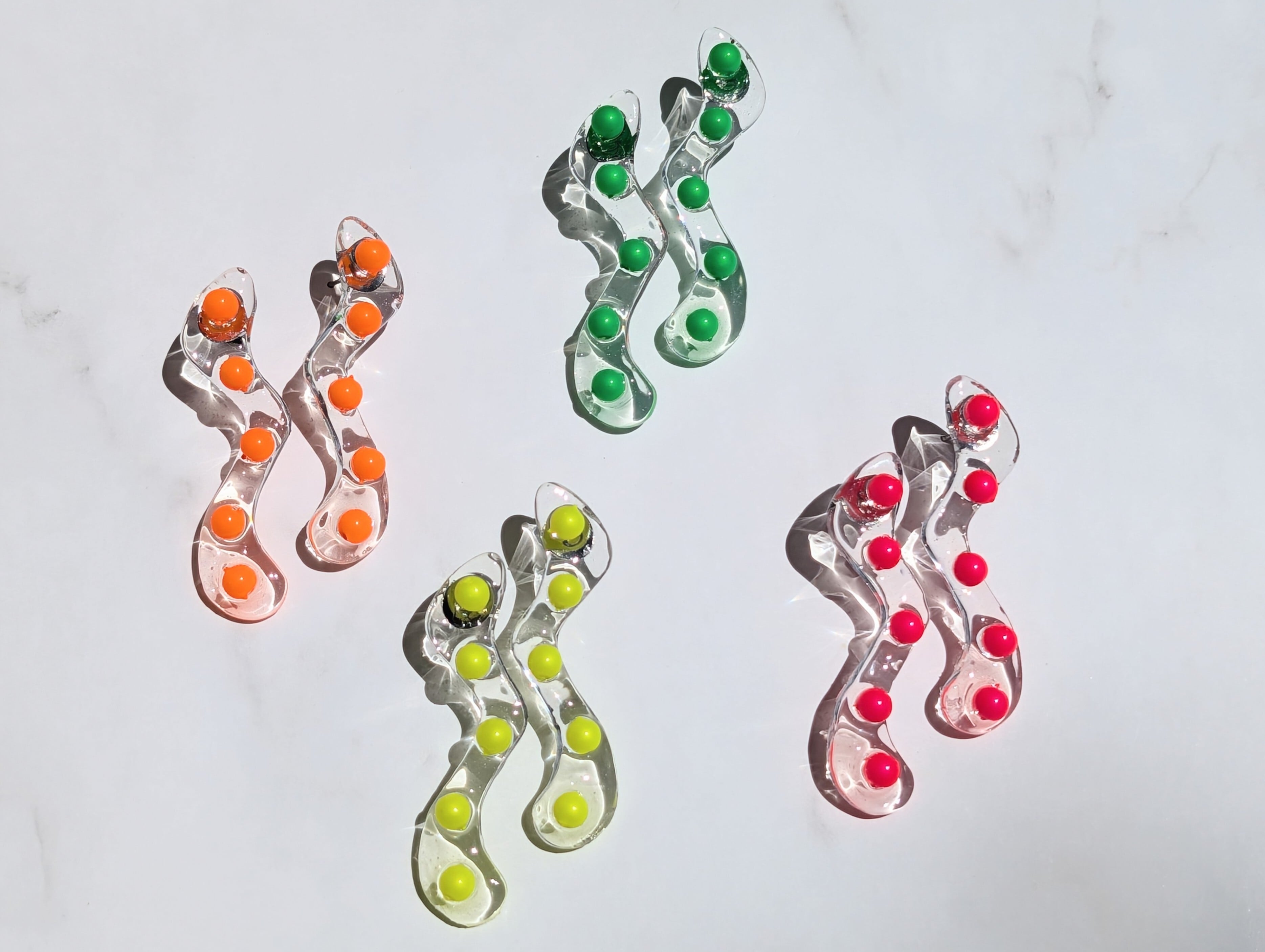 細めのうねうねにネオンカラーのビーズを散りばめました。