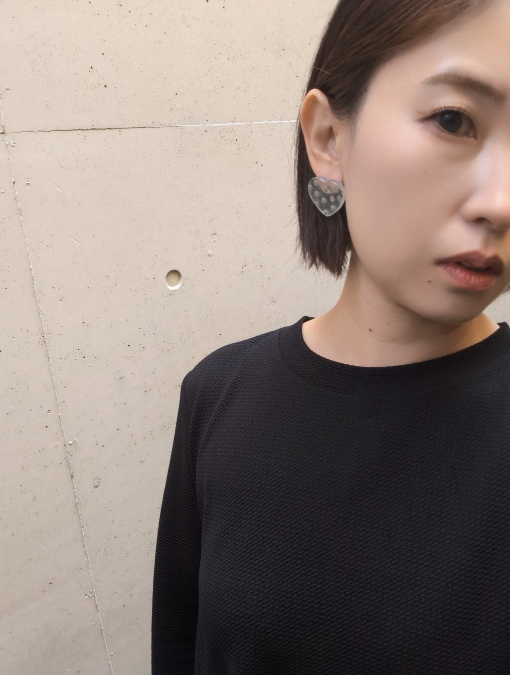 質感がマットのクリアハートにゴールドのドットを散りばめたピアス・イヤリング