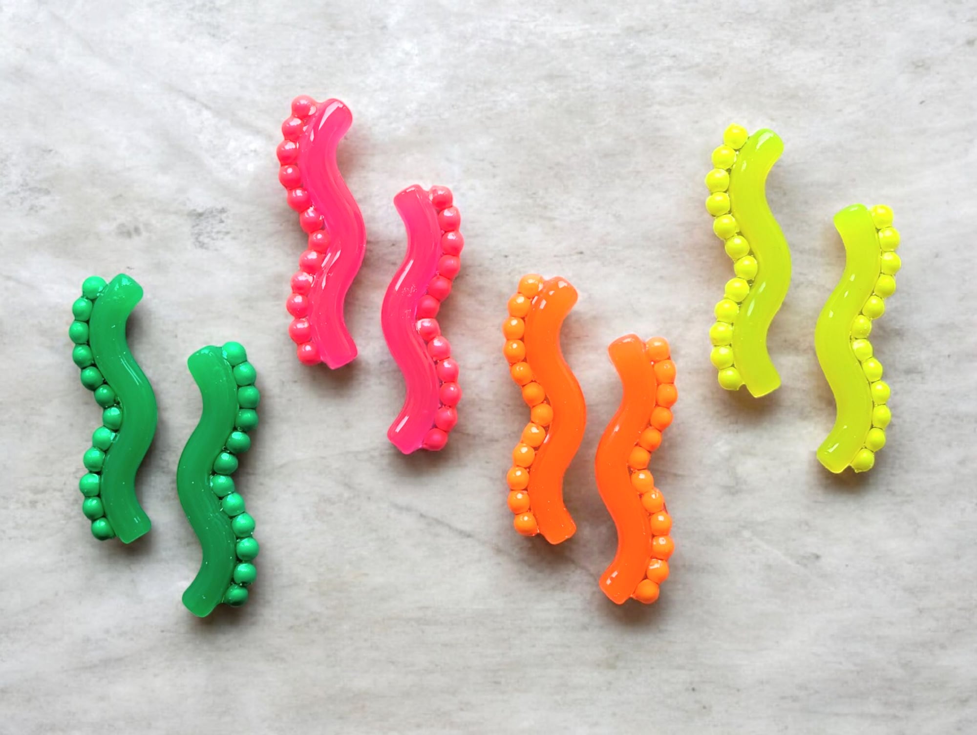くねくねに同色のネオンビーズをフチにのせました。